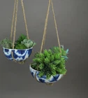 NOTE: DUE TO THIS IS A SET OF 2 this item is being sold at a reduced price. This set of white ceramic hanging mini planters features wonderful Japanese shibori-inspired patterns. Unlike tie-dye, shibori utilizes wooden blocks to create wonderful geometric patterns. These beautiful planters have stunning deep blue shibori-style designs to add a burst of color to your room, and have natural jute rope hangers for easy mounting to ceiling hooks or shepherd's hooks. The bigger one is 3 inches high, 6 inches in diameter, with an 11. inch drop hanger, and the smallest is 2.75 inches high, 5 inches in diameter, with a 9.5 inch drop hanger. Our eBay Store About Us Add to Favorite Sellers Set of 2 Blue and White Shibori Style Dyed Ceramic Hanging Mini Planters NOTE: DUE TO THIS IS A SET OF 2 this item is being sold at a reduced price. NOTE - DUE TO THIS IS A SET OF 2 this item is being sold at a reduced price. DURABLE MATERIAL - Made of Ceramic With Natural Jute Rope Hangers For Years of Display UNIQUE FINISH - Different Deep Blue Shibori Inspired Patterns EASY TO HANG - From Shepherds Hooks, Garden Stakes and Trees OVERALL SIZE - Large - 3 Inches High, 6 Inches in Diameter. Small - 2.75 Inches High, 5 Inches in Diameter NOTE: DUE TO THIS IS A SET OF 2 this item is being sold at a reduced price. This set of white ceramic hanging mini planters features wonderful Japanese shibori-inspired patterns. Unlike tie-dye, shibori utilizes wooden blocks to create wonderful geometric patterns. These beautiful planters have stunning deep blue shibori-style designs to add a burst of color to your room, and have natural jute rope hangers for easy mounting to ceiling hooks or shepherd's hooks. The bigger one is 3 inches high, 6 inches in diameter, with an 11. inch drop hanger, and the smallest is 2.75 inches high, 5 inches in diameter, with a 9.5 inch drop hanger. Product Details Color Blue Height 3.5 Length 7 Weight 2.3 LB
