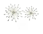 NOTE: DUE TO THIS IS A SET OF 2 this item is being sold at a reduced price (DAMAGE MAY VARY PER PRODUCT AVAILABLE). Durable Material - Crafted with utmost precision and care, these starbursts are made of high-quality metal, ensuring years of maintenance-free display. The sturdy construction guarantees long-lasting durability, making them a valuable addition to your home decor collection. Eye-Catching Decor - The polished gold-tone finish of these starbursts emanates a warm, inviting glow that brightens up any room. The intricate design, coupled with the brilliant golden hue, creates a mesmerizing visual appeal. These starbursts are not just decorations; they are statements, adding sophistication and charm to your living spaces. Our eBay Store About Us Add to Favorite Sellers Set of 2 Gold Finish Teardrop Crystal Jeweled Starburst Metal Wall Hangings NOTE: DUE TO THIS IS A SET OF 2 this item is being sold at a reduced price (DAMAGE MAY VARY PER PRODUCT AVAILABLE). Durable Material - Crafted with utmost precision and care, these starbursts are made of high-quality metal, ensuring years of maintenance-free display. The sturdy construction guarantees long-lasting durability, making them a valuable addition to your home decor collection. Eye-Catching Decor - The polished gold-tone finish of these starbursts emanates a warm, inviting glow that brightens up any room. The intricate design, coupled with the brilliant golden hue, creates a mesmerizing visual appeal. These starbursts are not just decorations; they are statements, adding sophistication and charm to your living spaces. Easy to Hang - Featuring triangular metal hangers securely mounted on the back of each sculpture, these starbursts are incredibly easy to hang. The sturdy design ensures hassle-free installation, allowing you to effortlessly transform your room within minutes. Arrange them as a cluster or space them out; their flexibility enhances your creative freedom. Overall Size - These starbursts are generously sized, measuring 12 inches in diameter with a substantial 1.5-inch depth, adding a captivating focal point to your wall decor. The medium starbursts have a diameter of 9 inches NOTE: DUE TO THIS IS A SET OF 2 this item is being sold at a reduced price (DAMAGE MAY VARY PER PRODUCT AVAILABLE). Elevate your space with these dazzling gold-tone wall accents, each resembling a burst of splashing raindrops or fireworks. Crafted with metal rods and teardrop-shaped, faceted clear glass gems, they add a touch of bling to your decor. These pieces create a visual spectacle, bringing excitement to any room. Hang them individually to fill your space with their charm or group them for a sophisticated look. The set includes 2 pieces: the largest with a 12-inch diameter, the medium with 9 inches. They protrude 1.5 inches from your wall, creating a stunning 3D effect. Perfect for those with a keen eye for unconventional design and a penchant for mid-century modern aesthetics, these accents blend seamlessly into your home, adding a touch of contemporary elegance and sparkle to your walls. Whether you're adorning your living room, bedroom, or hallway, these wall sculptures bring an air of modern sophistication, turning your space into a dazzling showcase of style. Product Details Color Gold Height 12 Length 12 Weight 0.75 LB