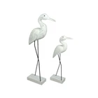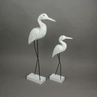 You love the shore, but if you live a little further away, you can bring the look of the coast to your home with this wonderful pair of hand-carved wooden egret statues, with legs made of reinforced steel round bar. Place them on a table with plants or on a wall shelf as part of a gallery wall. The white finish is given a distressed look giving it a seaside appearance. The shorter one measures 15.25 inches high, 5.25 inches long, and 2.5 inches wide, and the larger one measures 21.25 inches high, 9.25 inches long, and 2.75 inches wide. These wood and metal statues are a charming way to beautifully complement beach, coastal and nautical decor styles. Our eBay Store About Us Add to Favorite Sellers Set of 2 Hand Carved Wood and Metal White Egret Bird Statues Coastal Decor OVERALL SIZE - Short - 5.25 Inches Long, 2.5 Inches Wide, 15.25 Inches High. Large - 9.25 Inches Long, 2.75 Inches Wide, 21.25 Inches High DURABLE MATERIAL - Creatively Crafted of Albesia Wood and Reinforced Steel Bar UNIQUE DETAIL - Hand Carved and Hand Painted INDOOR / OUTDOOR - Looks Great on Porches and Patios as Well as Bedrooms and Living Rooms GREAT GIFT - For Yourself or For Friends and Family You love the shore, but if you live a little further away, you can bring the look of the coast to your home with this wonderful pair of hand-carved wooden egret statues, with legs made of reinforced steel round bar. Place them on a table with plants or on a wall shelf as part of a gallery wall. The white finish is given a distressed look giving it a seaside appearance. The shorter one measures 15.25 inches high, 5.25 inches long, and 2.5 inches wide, and the larger one measures 21.25 inches high, 9.25 inches long, and 2.75 inches wide. These wood and metal statues are a charming way to beautifully complement beach, coastal and nautical decor styles. Product Details Color White Height 21.25 Length 9.25 Weight 3.05 LB