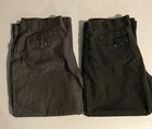 Set of 2 Lee Platinum Label Plus Size Women's Pants Size 20W Petite- Gray. Pants are light gray and dark gray with a subtle pin striping pattern. Pants are plus size relaxed straight fit and made with a cotton blend- 72% cotton, 26% polyester and 2% spandex. Measures 28" inseam and waist is 42". Pants show minimal wear. Soft fabric with stretch- fabric covered button and zip closure. Has two front pockets and two back pockets with fabric covered button closure. Stretch fabric lined no gap waistband. In good condition for age and use. No rips or tears. No stains. See Photos.