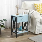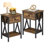Features ² 【 Vintage appearance】The classical design and simple construction gives this modern nightstand a beautiful and elegant look. The nightstand is functional and suitable for any space. ² 【 Large Storage】Equipped with a pull-out drawer and a large-capacity lower cabinet, it is the perfect choice for bedside item storage, keeping your bedside tidy. ² 【 Multi-scenario use】You can put it in the living room as a side table, or a small coffee table. It can also be placed in the bedroom as a bedside table, next to the desk is also a good choice. Storage can be done better. ² 【 Reliable Quality】Made of high-quality MDF and metal, coupled with an X-shaped frame design, strong and stable. Four adjustable metal foot pads keep the nightstand balanced on uneven ground and increase its stability. ² 【 Easy Assembly】 Detailed instructions and all labeled parts and accessories are included, Just following the easy-to-understand and finishing the assembly quickly .The end table wipe-clean surface, and is easy to clean. Specifications Nightstand Color: Brown, Black, White, Walnut Brown, Hemp Gray, Gray, Antique Brown, Light Blue, Orange, Pink Material: Manufactured Wood; Metal. Size:21.7'' H X 15.8'' W X 11.8'' D Weight: 60 lb. Package Includes: 2 x End tables 1 x Instructions 1 x Assembly Bag Note: 1. When viewing the color of the product on your monitor, it may differ from the actual color of the item. 2. Please allow ±1/0.5'' error due to manual measurement.