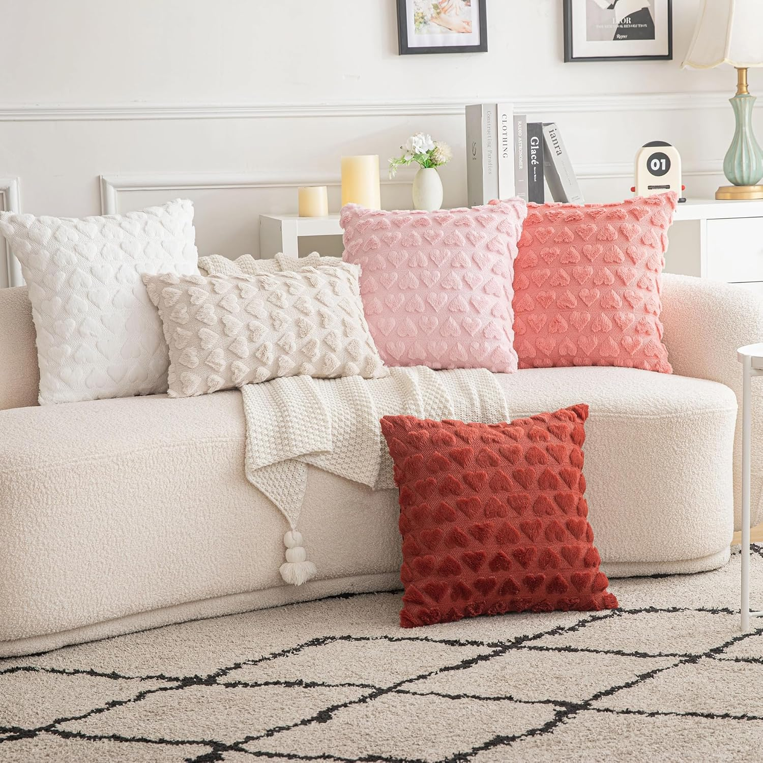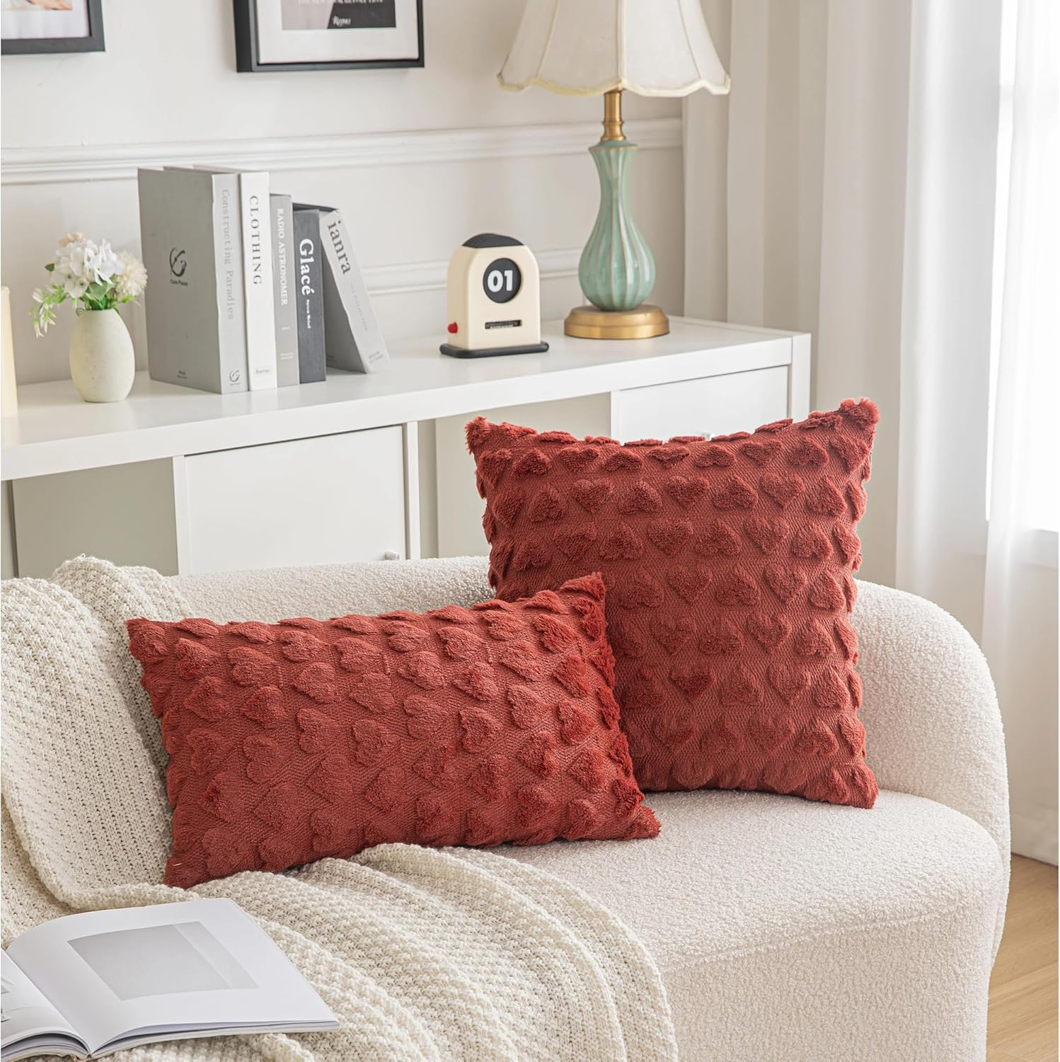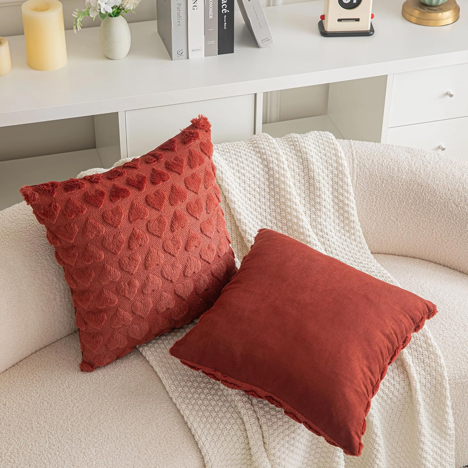 100% Polyester Long-lasting Quality: Crafted from premium 100% polyester materials, these Decorative Pillow Covers are designed to withstand daily use, ensuring they remain in excellent condition on your couch, sofa, or bed for years to come. These plush pillow covers will instantly enhance the atmosphere of your living room, office, or farmhouse. Zipper Excellence:These textured pillow covers (cojines decorativos para sala) feature sturdy zippers for easy removal and secure closure, making cleaning and maintenance a breeze. True Colors & Sizes: Choose from a wide range of accurate color options and two different sizes to perfectly match your decor, whether you're aiming for a boho chic style or decorating for the Valentines Day season. Versatile Usage:The modern throw pillow covers are perfect for a variety of settings, from adding a cozy touch to your living room to bringing warmth to your office space or farmhouse-themed decor. They are also ideal for creating a festive ambiance during Valentine's Day celebrations. Package & Care Tips: Set of 2 shaped cushion covers, INSERTS NOT INCLUDED. Hand washing is recommended, but you can also machine wash these covers in cold water on a gentle cycle. Avoid using bleach, and do not tumble dry. Product Description The video showcases the product in use. The video guides you through product setup. The video compares multiple products. The video shows the product being unpacked. Ideal for both indoor and outdoor use, these decorative throw pillow covers add a touch of style to any space. Create a simple yet stylish atmosphere in your living room, bedroom, sofa, car, or office with these versatile covers. Soft Fluffy Pillowcases for Home Décor, Boho Pillow Covers for Couch Bedroom These durable and stylish pillow covers are designed to enhance your existing color scheme and bring a touch of elegance to your home. Made from thick materials, they will maintain their look and feel for years to come. Transform your living space with these must-have additions. Short Wool Throw Pillow Covers Square Luxury Style Cushion Case Pillow Shell Our pillow covers are not only incredibly comfortable but also thoughtfully designed with a strong and smooth invisible zipper. This durable zipper is securely attached, ensuring a seamless look and hassle-free insert and removal of the pillow. Throw Pillow Covers with 3D Heart Pattern Sofa Pillow Covers for Living Room Comparison Between AQOTHES Throw Pillow Covers Add to Cart Add to Cart Add to Cart Customer Reviews 4.8 out of 5 stars 163 4.5 out of 5 stars 1,272 4.6 out of 5 stars 135 4.4 out of 5 stars 98 4.7 out of 5 stars 139 4.6 out of 5 stars 145 4.3 out of 5 stars 62 Price $15.99 $ 15 . 99 $15.99 $ 15 . 99 — $13.99 $ 13 . 99 — — — Number Of Pieces 2 2 2 2 2 2 2 Pillow Insert ✘ ✘ ✘ ✘ ✘ ✘ ✘ Material Faux Fur Velvet Corduroy Corduroy Linen Corduroy Faux Fur Invisible Zipper Closure ✔ ✔ ✔ ✔ ✔ ✔ ✔ Machine Washable ✔ ✔ ✔ ✔ ✔ ✔ ✔