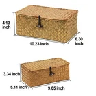 【Set of 2 Basket Set】Small 10.23"L x 6.3"W x 4.13"H, 1 Pack; X-Small 9.05"L x 5.11"W x 3.34"H. Due to the handmade nature, the dimensions may vary within 1/4 inch. Woven Baskets can be stacked when not in use, saving space. 【Natural Seagrass】Our seagrass storage baskets are hand-woven with high-quality natural seagrass and metal frame inside, making them sturdy and functional as well as beautiful. The unique button design secures the lid to the box for added security and aesthetics. 【Versatile Storage Basket with Lid】Ideal for the storage of snacks, fruit, remote control, towels, toilet paper, toiletries, socks, underwear, stationery, accessories, chargers, data cables, toys, and other household items. 【Keep Home Neat】Perfect for the pantry, bathroom, kitchen, bathroom, living room, bedroom, nursery, dormitory, and office. A basket with a lid can make your closet and room look neater. 【Fantastic Gift】Decorative box are hand-crafted and can be given as standalone gifts to friends, family, and lovers; You can also put the gifts in the seagrass basket as an ideal housewarming or birthday gift!