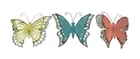 Whether displayed inside your home or on a garden fence or exterior wall, this trio of butterflies will make a big buzz! Creatively crafted from metal, they feature embossed designs, galvanized zinc coated accents and coral, yellow and blue enamel painted finished, purposefully distressed to give them vintage character. Each piece has a keyhole mount on the back for easy hanging. These butterflies are a fresh alternative to canvas prints or framed photos and bring a calming element of nature to your decor. The coral butterfly measures 16.5 inches high, 15.75 inches long, 0.75 inches deep, the yellow one is 16.5 inches high, 19.25 inches long, 0.75 inches deep, and the blue one is 16.5 inches high, 19.25 inches long, 0.75 inches deep. Our eBay Store About Us Add to Favorite Sellers Set of 3 Distressed Finish Metal Butterfly Wall Hangings Galvanized Zinc Accents OVERALL SIZE - Coral - 16.5 Inches High, 15.75 Inches Long, 0.75 Inches Deep. Yellow - 16.5 Inches High, 19.25 Inches Long, 0.75 Inches Deep. Blue - 16.5 Inches High, 19.25 Inches Long, 0.75 Inches Deep. DURABLE MATERIAL - Crafted of Metal For Years of Maintenance Free Display DISTRESSED EDGES - On Enamel Finish Gives an Antiqued Feel FARMHOUSE FINISH - Galvanized Zinc Finish for a Great Country Look PERFECT ACCENT - For Your Home, Porch or Patio Whether displayed inside your home or on a garden fence or exterior wall, this trio of butterflies will make a big buzz! Creatively crafted from metal, they feature embossed designs, galvanized zinc coated accents and coral, yellow and blue enamel painted finished, purposefully distressed to give them vintage character. Each piece has a keyhole mount on the back for easy hanging. These butterflies are a fresh alternative to canvas prints or framed photos and bring a calming element of nature to your decor. The coral butterfly measures 16.5 inches high, 15.75 inches long, 0.75 inches deep, the yellow one is 16.5 inches high, 19.25 inches long, 0.75 inches deep, and the blue one is 16.5 inches high, 19.25 inches long, 0.75 inches deep. Product Details Color Multicolored Height 16.5 Length 15.75 Weight 2.95 LB