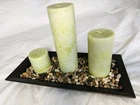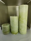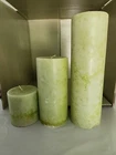 The set of 3 Cost Plus candles have never been used, but have been out of a box for a period of time, therefore they do have some scratches and bumps from moving them around. Please review photos.