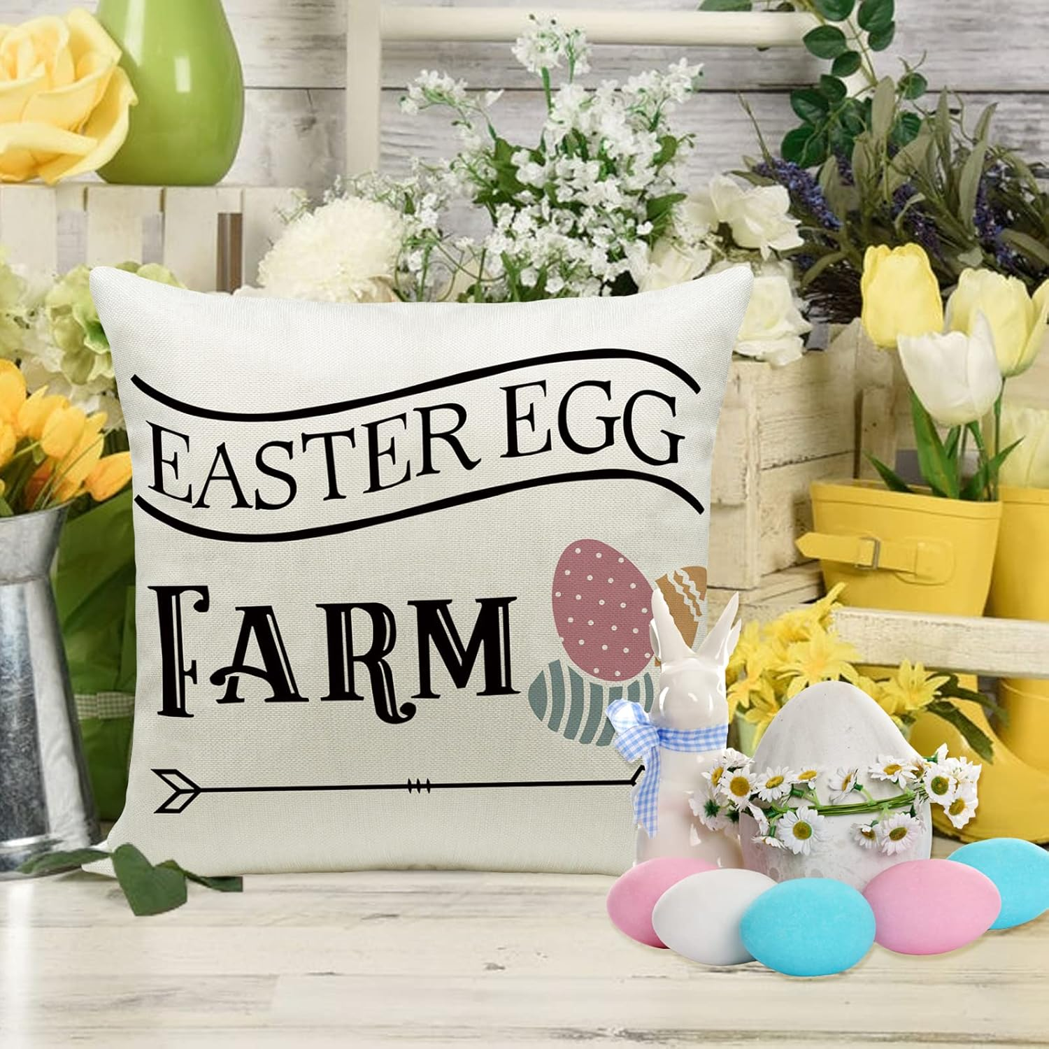 Store New Arrivals Add to Favorite View Feedback Contact Easter Pillow Covers Set of 4 20X20 Inch Farmhouse Bunny Decoration Egg Rabbit Decorative Pillow Cases for Sofa Couch Description Style Rustic Weave Type Plain Weave Number of Items 4 Pattern Print Theme Easter Cartoon Character Rabbit Number of Pieces 4 Unit Count 4 Count Room Type Bedroom, Living Room, Home Office Batteries required No Product Dimensions 20"L x 20"W Material Linen Closure Type Zipper Item Weight 11.7 ounces Occasion Decoration Special Feature Durable Color Multicolor Shape Square Recommended Uses For Product Outdoors, Home Product Care Instructions Machine Wash Size 20" x 20" (Pack of 4) Easter Day Pillow Covers : The throw pillow covers use of rabbits,color eggs, "Happy Easter" and other classic elements. It can also be used with other Easter decorations, which is very suitable as a decoration for your love home. 100% Cotton Linen : All of the pillowcase are made of cotton linen material, natural linen, enviromentally friendly, comfortable, durable. The pattern is only available on the front side. The back is the nature linen color without printing. Size : All of the pillow covers measures 20x20 inches around (50cm x 50cm). To ensure the proper fit, we make all pillow covers slightly smaller (approximately 0.5-1" smaller) than the insert size. Suitable Occasion : The Easter Day Pillow Covers set of 4 is an unique Easter Day decoration, Can be applied for home decoration at festival, also suitable for special parties and events. Ideal for Indoor Outdoor Decorations. Washing Tips : Good fabric for home furnishing, comfortable and soft, both machine washable and the hands washable. If machine wash is used, it is recommended to cycle only, dot not bleach. Product Description IMPORTANGT: Materials: Linen Design: Hidden zipper design Package Include: 4 Pcs Throw Pillow Covers( Not include Insert or filler ). Tips: Due to manual measurement and cutting,1-2 cm error may occur. Throw Pillow Cover For Easter Day Decoration Fine Workmanship, Washable and Durable, Warm and comfortable The pillow covers is made of cotton linen materials, skin-friendly and soft, hidden zipper closure makes the appearance more elegant, no bleeding, fading or fraying issue. It can be placed on the sofa, car, or bed for pillow support. Washing Tips: Not bleach. Hang to dry. Wash pillow covers every half month. Medium and low temperature ironing. FEATURES ABOUT THIS PRODUCT Size All of the pillowcase measures 20x20 inches around (50cm x 50cm). Exquisite workmanship The product has exquisite workmanship, zipper closure was designed to meet an elegant look. Bright Colors Clear and bright patterns, very suitable as St Patrick's Day decorations, It can be used to decorate the living room, sofa, car, or bed for pillow. ABOUT US We offer the best prices around on high quality products. Our E-store includes media such as books, movies, music and games while offering electronics, toys, sporting apparel, clothing, tools, general home, garden items and more. SHIPPING We are always working hard to ensure your package arrives as soon as possible. Please understand that some factors like weather, high postal traffic, and the performance of shipping companies are outside of our control. We offer free shipping to the lower 48 states and ship within 2 business days of payment, usually sooner. We do not accept P.O. Boxes. Please provide a physical address. For shipping outside of the continental USA, we only use eBay's Global Shipping Program.The item is shipped to KY and then sent to the rest of the world. International customers are responsible for all duties and taxes. Continue to check out in order to calculate costs for shipping the item to your country. Messages regarding eBay's Global Shipping Program MUST be directed at eBay EXCLUSIVELY. RETURNS We offer a 30-Day Return Policy on items which you are not completely satisfied with. You have the option for a full-refund or an exchange of the item. No returns are available on items shipped outside of the USA. PAYMENT We accept PayPal. CONTACT US This page content is yet to come Please ad us to your favorite seller and visit again later Thank You CUSTOMER SATISFACTION We try our very best to make sure every customer is completely satisfied. If there's a problem, message us! We're happy to help. WE ACCEPT
