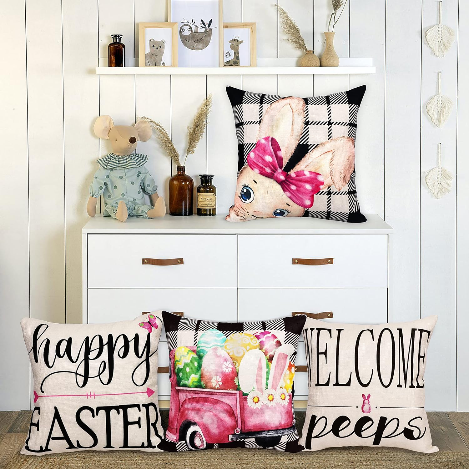 Store New Arrivals Add to Favorite View Feedback Contact OliverStore has been in the US market for over 5 years and offers free delivery to the customer's home with professional customer service Easter Pillow Covers 18X18 Set of 4 - Easter Decorations Throw Couch Pillow Cases for Home Holiday Linen Zipper Pillowcase Party Decor Description 4 Pieces Easter pillow covers included.Our Easter pillow covers is made of linen.Single-sided printing pattern.Solid color on the back. Measurement - The Easter pillow covers are approx. 18" x 18" / 45cm x 45cm (1-2cm deviation). Pillow insert are Not included.Invisible zipper closure on bottom of pillow to easily slip your pillow covers over any insert.Hidden zipper design, beautiful and practical. Wash with mild detergent,spot cleaning is recommended.If you need to wash the pillow covers,turn inside out,wash on delicate cycle and lay flat to dry.Warm iron on reverse when necessary. Easter pillow covers 18x18-Suitable for decorating your sofa,bench,bed,car,porch swing,lounge,etc.Add a festive atmosphere to Easter Decorations or holiday events.They are also a festival gift to your friends or family.a festive atmosphere to Easter Decorations or holiday events.They are also a festival gift to your friends or family. Product Description Item model number easter pillow cover 18 x 18 Style Traditional Weave Type Plain Number of Items 4 Pattern Animal Print Theme Car,Holiday Number of Pieces 4 Unit Count 4.0 Count Room Type Living Room, Lounge, Home Office Batteries required No Product Dimensions 18"L x 18"W Material Linen Shape Square Closure Type Zipper Item Weight 11.7 ounces Is Euro Pillow Size No Occasion Holiday,Party Special Feature Fade Resistant Pillow Type Throw Pillow Recommended Uses For Product Outdoors, Home Product Care Instructions Machine Wash ABOUT US We offer the best prices around on high quality products. Our E-store includes media such as books, movies, music and games while offering electronics, toys, sporting apparel, clothing, tools, general home, garden items and more. SHIPPING We are always working hard to ensure your package arrives as soon as possible. Please understand that some factors like weather, high postal traffic, and the performance of shipping companies are outside of our control. We offer free shipping to the lower 48 states and ship within 2 business days of payment, usually sooner. We do not accept P.O. Boxes. Please provide a physical address. For shipping outside of the continental USA, we only use eBay's Global Shipping Program. The item is shipped to KY and then sent to the rest of the world. International customers are responsible for all duties and taxes. Continue to 'check out' to calculate costs for shipping the item to your country. Messages regarding eBay's Global Shipping Program MUST be directed at eBay EXCLUSIVELY. RETURNS We offer a 30-Day Return Policy on items in which you are not completely satisfied with. You have the option of a full-refund or an exchange of the item. No returns are available on items shipped outside of the USA PAYMENT We accept PayPal. CONTACT US This page content is yet to come Please ad us to your favorite seller and visit again later Thank You CUSTOMER SATISFACTION We try our very best to make sure every customer is completely satisfied. If there's a problem, message us! We're happy to help. WE ACCEPT