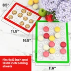 Baking Mats Silicone for Baking Sheets Multi-Purpose Use: Our silicone baking mat collection provides versatile options; with half sheets at 16.5 x 11.6 in and quarter sheets at 11.5 x 8.5 in Enjoy a Healthier Meal: Our macaron silicone cookie mat eliminates cooking sprays, butter, and oils, reducing calories; keep your family healthy with our improved silicone mat for guilt-free baking Non-Sticky and Easy to Clean: No need for butter while baking or rolling pastry; our silicone mat ensures easy release and cleanup, allowing you to enjoy hassle-free baking and delicious results! Reliable: This set of 4 reusable macaroon template silicone baking mats is reliable for everyone in the kitchen; perfect for bakers looking for convenience and quality in their baking routine Quality First: We believe in quality; all our mats are made to high standards, making this durable and convenient silicone macaron baking mat an essential liner for bake pans and pastries