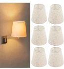 Set of 6 Chandelier Lamp Shades 5 Inch, Mini Barrel Lampshades Clip On for Table Lamp Wall Lamp Replacement, Natural Linen Mini Lamp Shade, 3.5x5x5.5in (Top Height Bottom