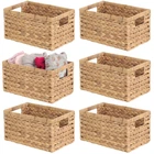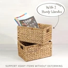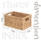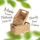 ✅ A GIFT FROM NATURE: Discover the beauty and sustainability of our handcrafted storage baskets, made from natural water hyacinth—a truly renewable resource. With its sturdy iron frame, this basket for organizing provides reliable storage that you can trust. The stylish handles on either side not only enhance its aesthetic but also ensure effortless portability, making it a perfect addition to your home. ✅ DIMENSIONS: each water hyacinth storage basket measures 13" L x 8" W x 6.7" H inches. The size of the wicker basket may differ by up to 1/4 inch due to the handcrafted design and manual measuring. ✅ INSTANT ORGANIZATION: In contrast to other woven basket options that need to be put together, these wicker baskets come fully assembled. They blend seamlessly with any interior design, offering a fashionable storage option. ✅ MULTIPURPOSE BASKET: Space-saving storage baskets can be utilized in various areas such as the bedroom, kitchen shelves, bathroom, living room, office, and restaurants. They can hold items like books, albums, pantry goods, towels, snacks, fruits, and vegetables.