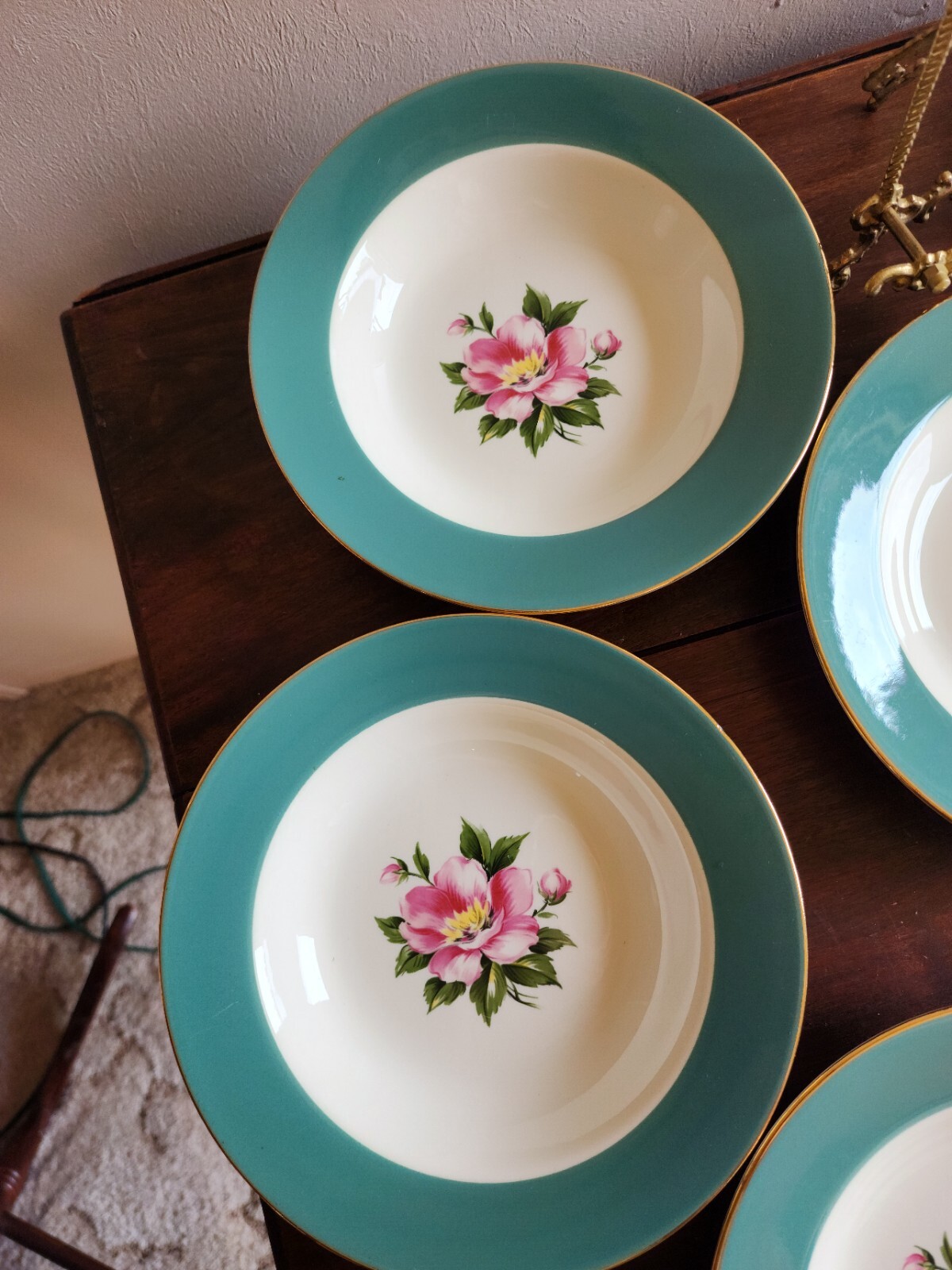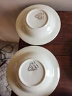 2 bowls have a tiny chip on each one. One bowls has a green spot on the green area. On the back of one has a mark. Please look at all pictures. size 8-3/8 inch