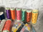 Sewing Notions Lot of Mettler & Madeira Thread, Needles, Scissors, Presser Feet, Tape Measures, Pins Etc. Included in this sale: ~ 11 New Spools of Madeira Polyneon Polyester Embroidery Thread No 40 weight - for general use 400 m or about 440 Yards per spool Spools are about 1 and 3/8 inches in length "Madeira's 100% polyester machine embroidery thread, Polyneon is constructed of a specially developed raw material which eliminates looping, puckering and virtually all thread breaks. Suitable for almost any embroidered application, Polyneon's unique formula makes this thread extremely durable and smooth running." "A strong thread perfect for machine embroidery, quilting, decorative stitching, and appliqué. 100% colorfast, polyneon colors remain brilliant even after repeated exposure to sunlight, chlorine, and washing and add a radiant burst of color to sports and activewear." ~ 14 New Spools of Mettler Cotton Mercerized Embroidery Thread No 60 weight - great for quilting and embroidery 200 m or about 219 Yards per spool Spools are about 2 and 1/4 inches in length "SILK-FINISH COTTON 60 is the perfect thread for quilting and creating matt embroideries. It can be perfectly processed on batiste, tulle, cotton, linen, terry, and many other fabrics. SILK-FINISH COTTON 60 consists of 100% long-staple Egyptian cotton that has a smooth and silk-like feel." **Please look closely at the pictures for details. Color variances, shade, or hue may vary depending on your phone or computer settings. ~ Scissors ~ Retractable Tape Measure ~ Tin with approximately 270 steel sequin pins - they are about 1/2" long ~ Round Tin with assorted steel Safety Pins ~ Tape Measure - 60 inches in length ~ Spool Pins (6) - to hold bobbins to the spool. Squeeze it tightly together and slide/push the bobbin on and then push it into the spool of thread. Nice to keep your threads together so you don't have to find the correct color when you use that color again! *NOTE* the spool thread and bobbin used for demonstration is NOT included in this sale. ~ Mini Retractable Scissors - great for tossing in your bag for on the go sewing or to travel with. ~ Push-In (Bayonet) Style Sewing Machine LED Light-Bulb ~ Universal Sewing Machine Needles - size 75/11 ~ Set of Low Shank Presser Feet: Buttonhole Foot Shirring/Gathering Foot Adjustable Zipper Foot Button Foot Zig-Zag Foot Zig-Zag Foot Special Purpose Foot Darning Foot Straight Stitch Foot Invisible Zipper Foot Quilt Guide The Presser feet are used items and may have scuffs/marks etc from normal use and age. Please check to see if they will fit your sewing machine before purchase. Please see pictures for details. All items will be carefully packaged. ~~ Shipped USPS First Class, Media Mail, FedEx Ground, UPS Ground, or USPS Priority or Ground, depending on item, delivery location and weight of packaged item. ~~ Important Information: - Please Read **Returns: I accept returns up to 30 days. If you receive the item and decide you do not want it, I will take it back if kept in its original condition and packaging. I will return the price of the item once the item is received back in its original condition. The shipping cost will not be returned - it was used to get the item to you. If the item is damaged due to my packing, please send pictures showing the damage. I will let you know if I will send a return label or just refund the money for the item. If the item is damaged by the post office/package carrier, I will ask you to take it back to the carrier to see if it is covered under the included insurance plan. I package items as well as I can to ensure your item arrives safely. I am not a dealer or professional photographer. I try to depict and capture items to the best of my ability. I try to point out any flaws I notice, but some may get overlooked. I will try to customize orders if requested. My goal is to secure your satisfaction with our transaction. If you are unhappy with your purchase, please contact me before leaving feedback. Payment is expected within 48 hours of purchase. ~~ Thanks for looking!