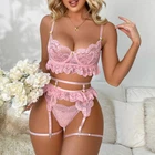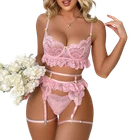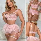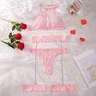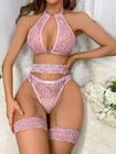 $ 7.39Sexy 4-Piece Fishnet Lingerie Set with Underwired Bra Thong Garters Gift