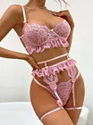 Material:Lace Style: Garter belt set, garter lingerie, two piece bodysuit, women in lingerie, lacy garter set, lingerie for women, sexy lingerie set, bra & panty sets. The lace on the front and the back is absolutely gorgeous,perfectly show your elegant figure. This seductive lingerie sets features sheer lace cups with strappy detailing, satin bow accents, adjustable spaghetti straps, a hook back closure, a matching high waisted garter belt, adjustable garter straps with metal clips, and a matching G-string panty. Occasion: This chemise with garters can be used as valentine's lingerie, lingerie set, sleepwear, honeymoon lingerie for women, bridal lingerie set, babydoll lingerie, V-Day Lingerie for women. Wear it and Surprise your sweetie on valentines day, Honeymoon, Anniversary and every special moments. Package Content: 1 x Women Lace Babyboll with Garter Belts Panty Want more?Click here!!!