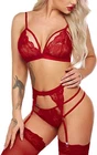 Materia l : L ace Women lace lingerie set features sheer lace cups with strappy detail, satin bow accents, adjustable spaghetti straps, a hook back closure, a matching high waisted garter belt with adjustable garter straps. Style: Garter belt set, garter lingerie, two piece bodysuit, women in lingerie, lacy garter set, lingerie for women, sexy lingerie set, bra & panty sets. The lace on the front and the back is absolutely gorgeous,perfectly show your elegant figure. This seductive lingerie sets features sheer lace cups with strappy detailing, satin bow accents, adjustable spaghetti straps, a hook back closure, a matching high waisted garter belt, adjustable garter straps with metal clips, and a matching G-string panty. Occasion: This chemise with garters can be used as valentine's lingerie, lingerie set, sleepwear, honeymoon lingerie for women, bridal lingerie set, babydoll lingerie, V-Day Lingerie for women. Wear it and Surprise your sweetie on valentines day, Honeymoon, Anniversary and every special moments. Package Content: 1 x Women Lace Babyboll with Garter Belts Panty (Thigh highs/Stockings not included.)