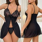 Women Sexy Lingerie Lace Sheer Babydoll Mini Dress Underwear Nightwear Sleepwear Product Specifications: Season: Summer Occasion: Special Materials: Polyester Pattern: Purity, Rhinestones Package Content: 1 x T-back, 1 x Top Dress Style: Semi-sheer Classify: Babydolls