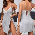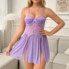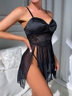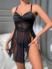 Modal Night Dress: 95% Cotton, 5% Spandex Material:This lace lingerie is made of 95% cotton 5% spandex,the sexy nightie is very silky,soft,flows,comfy,and stretchy to wear,it's comfortable, the material has a hugging-like effect . Women sexy full slip sleepwear lingerie set be the sexiest bedtime babe in this cute soft babydoll. Babydoll nightgown features deep V-neck lace, it fits perfectly your chest and show charming breast curve,adjustable straps will ensure you a best fit. Unique Design:Lace chemise is design of dual front side slits will perfect show your sexy leg curve.Hollowed back design makes you look very slim, sets off the shoulder and neck lines, shows your sexy butterfly bones, makes the whole back very sexy, and deeply attracts the attention of your lover. Occasion:Nightwear,Modal nightgown,Modal sleepwear,Loungewear,Chemise Dress,Night gown perfect for wedding night,honeymoon, anniversary trip,bedroom,Boudoir shoot,Valentine's Day,bathroom or every special night. Package Content: 1 x Women sleepwear (No Thong) Size Size US UK EU Under Bust Waist Length M Medium 6 10 36 74~96cm 72cm 69cm L Large 8 12 38 78~100cm 76cm 70cm XL X-Large 10 14 40 82~104cm 80cm 71cm XXL XX-Large 12 16 42 86~108cm 84cm 72cm Satin Lace Nightdress: 65% Polyester, 35% Nylon Hand Wash Only The upper part of the chest is made of opaque silk with underwired,push up bra mesh split hem dress with panty Fabric: Soft & comfy, fabric is very stretch Feature: Split, sheer mesh, nightwear dress, fashionable Occasion: Sleepwear, Nightwear. Suit for Wedding Night, Honeymoon, Valentine's Day Package Content:1* Sexy Babydoll Lingerie(No G-String Thong)