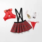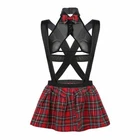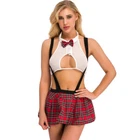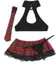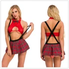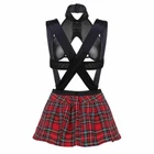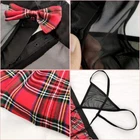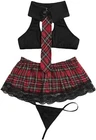 About this item: 【Material】 This sexy school girl outfit costume is made of 95% polyester, 5% spandex, the high quality fabric is soft, stretchable and comfortable to wear. 【Top】 The crop top of the women school girl lingerie features halter snap closure, easier to wear and adjust size. The keyhole design and plaid tie of the role play lingerie show your beautiful chest line,being a naughty schoolgirl uniform set with a mini skirt ! This 3 pieces naughty schoolgirl cosplay costume can be a sexy Halloween outfit with sheer mesh, showing your charm of both sexy lady and cute schoolgirl! 【Plaid Mini Skirt】The plaid skirts featuring classic plaid patchwork with lace-trim, shows pretty chic.The elastic waistband of the sexy student costumes is much easier to find suitable size and convenient to put on and take off. G-string of bottom of this student lingerie will attract your lover's eyes. The role play lingerie costume will make you more confident and look more charming. 【Occasion】 This costume lingerie set is perfect set to dress up for Halloween, Valentine's Day, night clubwear, women school girl lingerie, role play lingerie uniform, teacher lingeire, student lingerie, theme party, lingerie party, honeymoon, wedding night or any special night. 【Package Content】 1 X Sexy Costume Lingerie Set for Women( Mesh crop top + Plaid tie + Plaid pleated mini skirt + G-string)
