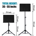 Standard Sheet Music Stand. GMS-009 with Carrying Bag. Height Adjust: from 35" to 55". Can be used while standing or sitting.(from 35'' to 55'') Portable yet sturdy for traveling, school or home. Tray tilts 180 degrees for maximum flexibility. Carrying bag and note clamp. Quality premium Guarantee.