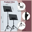 Product Features: Sturdy and durable metal construction Dual-purpose design, suitable for both sheet music and books Height adjustable to meet individual preferences It comes with a carrying bag for easy transportation and storage Equipped with a sheet music holder for convenience Target Audience: Ideal for musicians, music students, teachers, and readers who need a reliable and portable sheet music stand or book holder Versatile Height Adjustability: Enjoy the flexibility of our Sheet Music Stand with its adjustable height feature. Easily find the perfect position for your performances or reading sessions, as it can be adjusted from 29 to 55.5 in, accommodating both sitting and standing positions Foldable And Convenient: Designed for convenience, our music stand is easily foldable and comes with a practical carrying case. Whether you're a traveler, student, or performer, it's ideal for on-the-go use, making it perfect for travel, school, band, and home performances and practice sessions Customizable Tilt Angle: The support plate of our music stand allows you to adjust the tilt angle to best suit your needs. Whether performing on stage or reading at home, you have full control over your viewing experience. The 18.8" x 13.3" metal bookmark securely holds your sheet music in place Stability With A Tripod Base: Featuring a sturdy tripod base, our sheet music stand offers excellent stability. You can confidently rely on its reliable support, while the non-slip rubber cover on the bottom prevents any scratches on your floors Durable And Reliable: Crafted with high-quality metals, our sheet music stand is built to withstand frequent use. Its strong structure ensures longevity and stability, providing musicians with a reliable tool for performances and practice