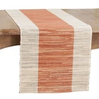 Made with water hyacinth and featuring a neutral backdrop, this lovely Shimmering Banded Table Runner brings a natural look and feel to your décor. The wide band is designed in contrast with the background, which adds depth and dimension to the tabletop. Pair it with matching placemats or solid colors. Size: 16"x72" Design is not reversible Runner has no lining -tone design, adds beautiful contrast. Material: 95% water hyacinth - 5% polyester + Care: wipe clean with damp cloth