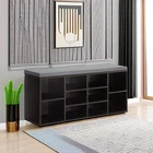 【Easy to Assemble】--The Shoe Storage is easy to assemble,You only need to follow the assembly steps described above in the manual.The Storage Bench took approximately 15min for one person to put together,You can get a perfect and practical Shoe cabinet. 【Save Space】--The Shoe Storage Perfect for a small corner or space by a door or small Hallway,The Storage Bench can hold shoes, groceries or children's toys.The shoe cabinet can make your messy area clean and tidy, saving you a lot of space. 【Multi-fonction】--This Storage bench can be used anywhere to meet your different needs. The Shoe Storage can be used as a bed end bench, toy box, storage box, etc. It plays a great role in keeping the living room, bedroom and utility room in order. 【Adjustable Shelves for Multiple Needs】--The Storage Bench far left and right two shelves can be adjusted to 3 different heights are suitable for sneakers, high heels and storing boots ;The Shoe Storage provide more shoe storage options for different sized shoes. 【Removable Cushion】--The Shoe Storage Bench cushion on the top of the bench is filled with high-density foam and covered by fine linen. The Shoe Storage cushion is removable for easy cleaning or changing a new cushion. Product Description Sit and Relax You can sit on this comfortable cushion when you need it, and it will provide you with comfortable support while you change your shoes. Easy to clean Made of high quality CARB P2 particle board.Melamine veneer table top, waterproof and scratch-resistant. Sturdy & Stable Crafted of particle board and designed in a stable structure.Good workmanship leads to good product quality. Adjustable Shelves The shelves on the both end of this under window bench can be adjusted to 3 heights for different storage needs, like tall shoes, boots, storage bins, books and toys. Firm and Durable High quality particleboard is used in the shoe cabinet,Green and natural.The maximum static load weight is up to 440 lb. Hidden Velcro Hidden Velcro allows you to avoid the trouble of slipping the cushion.Beautiful and strong. Comfortable Cushion Filled with sponge and cotton linen fabric as the cover, the cushion is breathable, removable and easy to clean.