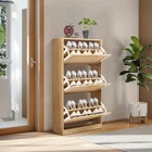1.【LARGER STORAGE CAPACITY】- After in-depth survey of shoe cabinets in the market, we launch this 3 tier shoe cabinet with suitable length and heightened tier distance, it measurements 23.62" L x 9.25" W x 46.06" H. With this size, we can total store 12-16pairs of shoes and make better use of space; and heightened distance of each flip door is 12’’, which can store most size of US Men’s Shoes. 2.【COMBINATION OF NATURAL AND MODERN】 - The rattan decorated doors combine aesthetic beauty with great practicality. It adopts natural rattan with handmade weaving technology, the natural rattan not only has the effect of absorbing moisture and heat but also delivering perfect visual effect. Its style easily matches your home decoration and suitable for hallway, entryway, living room and anywhere you like. 3.【FREE ADJUSTMENT AND FLEXIBLE TABLETOP STORAGE】- The compartment in the middle of each flip drawer can be adjusted or removed to fit different heights of shoes so that shoes can all be neatly placed inside! Besides, the multi-use top board provides large storage space for your keys, umbrella, small plants and even can be a display area for decoration. 4.【PREMIUM QUALITY & MORE STABLE DESIGN】- Eco-friendly and premium MDF board with free-standing structure promise a long service life of furniture. The smooth surface is not only easy to clean, but also resistant to water & scratches. Besides, 3 lines of boards on the back increase the stability of this shoe cabinet. Anti-dumping devices are included for adding security and it is easy to assemble by following manual instruction. 5.【30 MINUTES QUICK INSTALLATION】- Our shoe cabinet comes with clear instruction, it shows illustrations and marking all spare parts. All kinds of screws are labeled in different bags, and all parts are labeled as well, which will help you install smoothly and successfully in a short time. If you have any questions in the assembly process, please feel free to contact us and we promise to reply you within 24 hours! Product Description