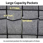 【Sturdy than normal】This over the door shoe organizer is made of breathable and durable non-woven fabric and comes with 4 sturdy metal hooks, including 24 big and deep pockets. This hanging shoe organizer for the closet measures 61.4 x22 inches. 【24 large&deep pockets】The pocket size of this hanging shoe rack is 5.5 x 8 inches, big enough to fit a pair of flats in the same pocket. You can use this shoe organizer to hold various kinds of shoes, such as men slippers, women sneakers, and kids shoes. This shoe rack also can be used in a college dorm or cruise, or classrooms as a classroom headphone storage organizer. 【Saving space】This shoe rack for door comes with 4 metal hooks that fit well over the door, behind or back of the closet door, mounted on the wall to keep your shoes organized, and takes almost no space at all. Detailed description: Product Name: Shoe Organizer Hanging Bag Size: 156x55.8cm / 61.4x22 inches Each Pocket: 5.5 X 8 inch Hook Size: 3X 1.75inch Hook Thickness: 1.5mm Hanging Bag Material: non-woven fabric + cloth + shoe rack Hook Material: stainless steel Color (optional): gray,black