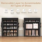 Return Policy Fast Delivery Trusted seller Shoe Rack with Cover, 5 Tier Shoe Organizer Storage for 20-24 Pair Shoes and Boots Large Shoe Storage Shelf Space Saving Vertical Shoe Rack for Closet, Front Door Entrance, Dorm, Garage Product Description Holds a Lot of Shoes: Dimensions of large shoe rack is: 33.8"D x 9.8"W x 40"H, can be storage for 20-24 pairs of shoes. 5 tier shoe rack provides you with ample storage space, whether it's boot, high heel, sneaker or sandal, they can all be easily stored Detachable and Stackable: The distance between the layers of this shoe stand is 7.8 in, suitable for all types of shoes. And you can also remove a layer and adjust the layer distance of the shoe closet to fit bigger shoes, can also stack 2 shoe rack for use Sturdy Shoe Rack: This closed shoe rack is made of sturdy metal frame, durable non-woven fabric and premium connectors, strong and durable enough. Each tier of this covered shoe rack supports up to 10 lb, easily carry your shoes and maintain stability Shoe Rack with Dustproof Cover: This shoe rack organizer has a cloth cover design, and the cover that keeps dust and pet out, ensuring that they stay clean. And the cloth cover is breathable, to keep your shoe fresh and dry, perfect for long-term shoe storage Space Saver Shoe Rack: This free standing shoe racks, takes advantage of vertical space, only takes up little space, perfect fit for small space, such as closet, entryway, dorm, bedroom, garage, hallway, front of door, living rooms, laundry room etc Easy to Assemble: The assembly of this vertical shoe rack is very simple, not require any tools, just follow the steps in the instruction manual to complete the assembly. And the stackable shoe rack details page provides an assembly video for your reference Shipping Returns Payment Shipping Shipping is FREE to all addresses other than APO/PO boxes in the lower 48 states. All our stock ships from US-based warehouses. Shipped via USPS or UPS (depending on location and package weight) Unless stated otherwise, all orders will ship within 24-72 hours of your payment being processed. Check our feedback to see the great reviews of FAST shipping we offer. Returns Seller does not accept returns Payment We currently accept payment via eBay managed payments only. Once payment is cleared, we will dispatch your shipment within 1-3 business days. Please refer to the "Shipping" tab for more information regarding shipping speed to your destination.