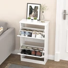 Shoe Storage Cabinet with 2 Flip Drawers, 2-Drawer, White Product Details Brand: TENNTOU Color: White Recommended Uses For Product: entryway shoe storage Product Dimensions: 9.45"D x 21.1"W x 33.27"H Special Feature: Adjustable,Removable Mounting Type: Floor Mount Room Type: Entryway, Bedroom, Hallway Door Style: Shutter Weight Limit: 66 Pounds Included Components: Wood Shoe Storage Cabinet Finish Type: Polished Size: 2-Drawer Shape: Rectangular Number of Shelves: 2 Number of Pieces: 1 Item Weight: 28 Pounds Base Type: Legs Installation Type: Free Standing Shoe Storage Cabinet Top Material Type: Engineered Wood Back Material Type: Engineered Wood Assembly Required: Yes Frame Material: Engineered Wood Number of Compartments: 4 Is Customizable: No Number of Levels: 1 Number of Racks: 2 Manufacturer: TENNTOU Item Weight: 28 pounds Item model number: Shoe Storage Cabinet MaterialStyle: Engineered WoodModern Number of DoorsNumber of Drawers: 22 Openwork Flip Drawer: Compared to those closed shoe cabinets, our shoe storage cabinet with an openwork door, which can keep the air circulation inside better. Flip drawers shoe cabinet can keep the shoes away from dust, keep the room tidy. Besides, The flip drawer ensures you can take your shoes out easily. Large Capacity Shoe Storage Cabinet: TENNTOU shoe cabinet has 2 layers of the flip bucket, each layer of the flip bucket has 2 layers of storage space, the depth of the drawer is 13'', fits for US men's shoe up to size 9.5, providing sufficient storage space, can accommodate about 8 pairs of shoes at least. Free Standing Shoe Rack with Adjustable Shelves: The 2-Tier entryway shoe cabinet can be placed in a narrow space. The interior shelves is adjustable and removable, you can choose whether to adjust or remove the shelf according to the size of your shoes. Easy to Clean & Strudy: This 2 flip drawer shoe cabinet is crafted of MDF with a smooth, easy to clean the surface. And its high-quality wood structure makes sure stability and durability. We are equipped with an anti-falling device behind the shoe rack cabinet for added security. Modern & Fashion: White shoe storage racks is enough to blend with most color palettes and modern designs. This shoe organizer unit is perfect for shoe storage in your entryway, hallway, living room, bedroom, or anywhere in your home.