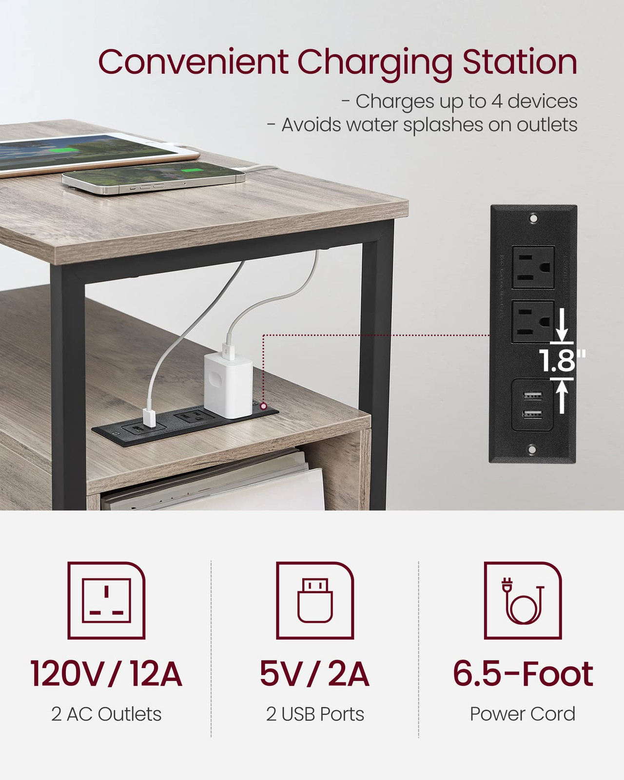 [Attached Power Strip] Power up your devices with our side table featuring a built-in charging station with 2 AC outlets, 2 USB ports, and a 6.5 ft cable, keeping your space organized and free from messy cords [Plenty of Storage] This narrow side table features 2 drawers with removable inner dividers, 2 open shelves for easy access, and a convenient magazine holder on the back, providing ample storage space for your books and electronics [Stable and Durable] Constructed with steel and particleboard, this slim nightstand will provide sturdy and reliable support (max. static load 200 lb) for your bedside essentials in the coming years [Thoughtful Additions] Designed with thoughtful details such as stylish easy-to-grab handles and smooth drawer slide rails, this end table brings convenient utility right by your bedside [Bring Rustic Charm to Any Room] This narrow bedside table can serve as a sofa side table, nightstand, or accent table. Its rustic design will add a touch of charm to your living room, bedroom, or wherever you need it