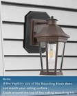 About the Vinyl Siding Mounting Block Material: UV rated plastic No big hole is needed on your vinyl siding. Perfect for outdoor Paintable surface The built-in electrical box design makes itvery easy to install. Run wires through center punch hole. Safer to have yourwires in a box. Siding Mounting Block Size: 6.65 inch W and 10.23 inch H. If you find that your vinyl siding is notsuitable, it doesn't matter. You can placed some caulking and then painted theblocks and molding. You will need to caulk around the top of the box to preventwater from infiltrating the electrical box. Note:Siding Mounting Block have a weep hole on the bottom that needs to be left open to allowany water that does deep in behind the block to escape. After Buying Service : We are pleasuredto help you. Please note that we are always hereto help. Please contact usthrough Amazon if you have any questions or inquiries. ✅【Durable Materials】The vinyl siding mounting block is made from high-quality, UV-rated plastic. The vinyl siding light block is black, and the surface can be painted to match the color of your vinyl siding or lighting. You can DIY for yourself! ✅【Just 5 MIN】Fast and easy to install this siding mounting block. We have detailed instructions for your reference. There is a weep hole on the bottom that needs to be left open to allow any water that does deep in behind the block to escape. ✅【Product Size】This siding mounting light block measures 6.53 inch W and 10.23 inch H. Only fit for 4 inch height of the Vinyl Siding with double 1/2 inch width lap siding surface. If not suitable, you can customize it to the appropriate size by yourself. ✅【Widely Applicable】Our siding mounting kit is compatible with all siding types, including T-111, HardiePlank lap siding, and flat surfaces. To stop water from seeping into the blocks, please seal the top of the block,excluding drainage hole. ✅【Package Contains】You will receive a black vinyl siding mounting light block, 1 NM cable connector and 5 screws to ensure you have enough supplies to complete your projects.