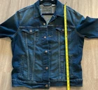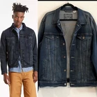 Elevate your casual style with this Signature Levi Strauss GOLD Men's Medium Denim BLUE Jacket. The jacket features a solid pattern and a mid-length design, with a button closure and accents that add a touch of metal theme to your outfit. The relaxed fit ensures comfort while the cotton poly elastine outer shell material provides durability. Perfect for travel and casual occasions, this Levi's Trucker style jacket is suitable for all seasons, including winter, summer, fall, and spring. The cotton lining material adds an extra layer of comfort, while the jacket's ability to protect against the elements makes it a must-have for any wardrobe. Add this jacket to your collection and enjoy its versatile design.