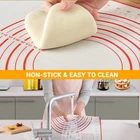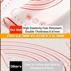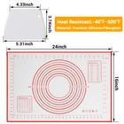 FOOD GRADE SILICONE: This silicone baking mat made of Food-Grade Silicone and glass fiber, heat resistant from -40℉ to 460℉, it is odorless/soft/durable and will not wrinkle or fade. NON-STICK & EASY to CLEAN: Non sticky surface-no need to use extra flour or oil to avoid sticking. Even if grease or dough sticks to the surface, this pastry mat can be easily cleaned with the cloth or dishwasher PERFECT SIZE BAKING MAT: This cooking mat is 16 X 24 inches, with practical conversion charts and the circular guides which make rolling out pie dough or pizza crust a breeze. Even the novice bakers can make a perfect size pie, pizza or pastry crust ANTI-SLIP BOTTOM PASTRY MAT: Double thickness(0.67mm) bottom makes this flour board strongly adhesive to any surfaces, this pie mat will not slip or crinkles. Great for kneading dough/Making Pasta/Pizza/Bread and so on EASY TO STORAGE: The soft material of this dough mat can be folded at will without creases, rolled up and folded, it is more convenient for storage, and does not take up more space unlike traditional bulky wooden pastry boards.