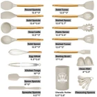 Silicone Cooking Utensils Set Our Kitchen Utensils Set is designed to make your cooking easier and faster. Each one of our utensils is sturdy, durable, premium food grade silicone heads that are position firmly in their acacia wooden handles. Our FDA approved, BPA free, non-stick kitchen utensils set are the perfect set for any kitchen. Features: Premium Food Grade Silicone Kitchen Utensils This premium silicone has great flexibility, the soft surfaces prevent scratching, scuffing or damaging your cookwares. The Silicone Heads are LIGHT GREY. Elegant Wooden Handle The wooden handles are sturdy and very durable. Ultimate Kitchen Essentials Utensils Set Our utensil set makes a perfect kitchen gadget gift for any occasions, including birthdays, Christmas, weddings and house warming parties. Stylish Utensils Set Unlike those bright colorful sets, our cooking utensils set will actually bring elegant into your kitchen. With our secure and stylish packaging, it will be a best cooking utensils for anyone. NOTES: Acacia wood should be hand-washed but NOT soaked in water and not exposed to extreme hot or cold temperatures. Please do NOT place them into dishwasher. Do not use steel wool or grinding tools to clean them. Before or after use, please wash it with warm water in time and keep it dry. Package Includes: 16 Pieces Cooking Utensils 1 x Deep Soup Ladle 1 x Solid Serving Spoon 1 x Flexible Spatula 1 x Slotted Turner 1 x Whisk 1 x Turner 1 x Basting Brush 1 x Slotted Spoon / Strainer 1 x Round Spatula 1 x Pasta Server 1 x Tongs 5 x Measuring Spoons 【21 Pcs Organic Silicone Cooking Utensils Set】The silicone kitchen utensil set includes 21 pcs tools that will satisfy all your cooking and baking needs. Our silicone utensil set with holder includes: Slotted Spoon, Soup Ladle, Solid Turner, Slotted Turner, Kitchen Tongs, Egg Whisk, Basting Brush, Pasta Server, Round Spatula, Solid Spoon, Solid Spatula, Spoon Spatula, Spreader Spatula, Also comes with the gift of 5pcs small Measuring Spoons of different sizes and 2pcs silicone oven mitt. 【Safe, Bpa Free, Food Grade Silicone】Our spatula set are made from the highest quality food grade silicone, BPA free, silicone is safe to use for any type of food, does not react with food or beverages, or produce any hazardous fumes. you don’t worry about the health of your families. And it will probably last longer than the other plastic kitchen utensils. This Kitchen Tools is the best gift choice for mom. 【Heat-Resistant, Non-Stick & Non-Toxic】The silicone cooking utensils can withstand temperatures up to 482°F/250°C, Even if they are used in the high temperature environment of frying, you don't have to worry that it will melt when you accidentally leave it in the pot for a while. And it doesn't retain odors or colors when you use it for stirring deep-colored food. Kitchen utensils are also non-stick and non-toxic. This is completely different from cheap plastic kitchenware. 【Anti-Scalding and Ergonomic Design Wooden Handle】 This utensil handle is made of solid wood, smooth and comfortable to the touch, it has great heat insulation, completely prevents the heat transfer during the cooking process to protect your hands. It is ergonomically designed for comfortable grip. A utility hanging hole on each wooden handle for convenient storage organization using hooks or a wall mount. 【Worry-Free After Sales Service】Our kitchen utensil set with holder are under strict quality standards so you can use it with confidence. If you have any questions with this cooking utensil set, please feel free to contact us and we will give you a satisfactory answer.