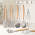 FOOD GRADE & HEAT RESISTANT SILICONE- Made of food-grade silicone that is healthy and heat resistant up to 446°F, Good abrasion, odor and high temperature resistance, No worry about burning, melting or toxic substance releasing to your food in the heat, Stand up to the wear and tear of daily use HEAT INSULATION WOOD HANDLE- High-hardness natural wooden handle built to last, Have good insulation performance make it stay cool to the touch during high-heat cooking, With lightweight provide secure and comfortable grip, Hanging hole easy for handing up to keep kitchen tidy NON-STICK & EASY CLEAN- Nonstick silicone coating good anti-sticking and stain resistance, Ensure that food slides effortlessly off the utensils, Reducing the need for cooking oil to make cooking and cleanup a breeze, Recommend washing by hand to extend serving life HEALTHY FOR NONSTICK COOKWARE- Flexible silicone head soft and safe for the nonstick or ceramic pots and pans, Also strong enough to scratch around the corners and edges to wipe off any residue, Without scratching or damaging the surface to prolong the serving life of your cookware 10-PIECE KHAKI SILICONE UTENSILS- Contains Soup ladle, Spatula Turner, Slotted turner, Large spatula, Pasta Server, Slotted spoon, Solid spoon, Round spatula,Kitchen tongs and Egg whisk, The range of utensils covers all your cooking needs, From stirring to flipping and serving, Ideal gift