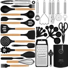 HEAT-RESISTANT, NON-MELTING, WOODEN HANDLE - Silicone cooking utensils set are heat-resistant up to 446°F, ensuring they won't melt or produce smoke even in high-temperature frying. The comfortable wooden handle prevents heat transfer, providing a safe cooking experience. This is the go-to basic cooking set for a new home or apartment. Please note that each wooden handle has a slightly different color and texture. THICKENED FOOD GRADE SILICONE, SAFE, BPA FREE, ODORLESS - Silicone kitchen utensil set is made of high-quality food-grade thickened silicone that is BPA-free and odorless. This is different from cheap kitchen utensil sets that have the same appearance but use less silicone. These silicone utensils for cooking do not react with food or oil even at high temperatures. 35 PCS COOKING UTENSILS, FULLY MEET YOUR KITCHEN NEEDS - Utensil Set includes everything you need to cook that perfect dish,includes Slotted Spatula,Slotted Spoon,Flexible Spatula,Slotted Turner, Solid Turner, Pasta Server,Solid Spoon, Kitchen Tongs, Draining Spoon , Whisk ,Deep Soup Ladle,Spatulas,Brush,Peeler,Pizza Cutter,Bottle Opener,Potato,Pusher,Ice-cream spoon,Can opener,Grater,Scissors,measuring cups and spoons set,Hooks,Tea strainer,Garlic crusher,Cheese knife,Spatula,Holder NO GAPS, EASY TO CLEAN - Stainless steel is wrapped inside each silicone cooking cookware to maintain its shape and flexibility, ensuring no warping. The Integrated forming design eliminates any gaps where food can get trapped, making cleaning a breeze. Except for the wooden handle utensils The other tableware is dishwasher safe. GIFT SELECTION AND RAPID AFTER-SALES RESPONSE - The silicone cooking utensils sets are an excellent choice for housewarming, wedding registry, and New Year gifts. We are committed to delivering speedy and supportive assistance to address any queries or concerns you may have. Feel free to contact us via the Buyer Page, and we will attentively listen and promptly respond within 12 hours.