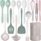 The 15 pieces of kitchen utensils almost cover the needs of your kitchen.we have carefully considered most of the scenes needed for kitchen use. Carefully selected such as: Deep soup, serving spoon, slotted turner, pasta server, flexible basting brush, whisk, tongs, turner, skimmer, silicone spatula. We pay great attention to quality and safety. They will satisfy all your needs for cooking, would be your great companion in the kitchen. Each of them has its unique use.it is a great gift idea. We can foresee the happy and surprised expression of the friend or mother who received the gift. If you have any questions during the purchase or use, we will be happy to help you. Please contact us, we will respond quickly within 12 hours. 15-piece kitchen utensils set will satisfy all your √needs for cooking Slotted Spoon / Solid Spoon Spoon Spatula Slotted Spatula Brush Kitchen Tongs Egg Whisk Turner Deep Soup Ladle Pasta Server Flexible Spatula / Spreader Spatula Slotted Spoon Utensil crock FOOD GRADE SAFE SILICONE.HEAT-RESISTANT, NON-MELTING, ODORLESS - Made of food-grade silicone, BPA-free, very safe to use in any type of food. The Silicone Cooking Utensils can withstand temperatures up to 446°F, Even if they are used in the high temperature environment of frying, you don't have to worry that it will melt. This silicone cooking utensils does not react with food or beverages, Will not retain odors or colors when you use it for stirring based food products THE SILICONE HANDLE IS ANTI-SCALDING.NONSTICK COOKWARE FRIENDLY.DISHWASHER SAFE - The cooking utensils One- piece stainless steel core to enhance durability and toughness to keep the spatulas from bending or deformation. Silicone head protect your pans, keep the cookware surface not scratched or dented. Extend the life of all your kitchen pans.They are scratch resistant.These 15 sets of kitchen utensils are very easy to clean. You don't have to worry about the dishwasher doing harm to them NO GAPS, NO FOOD IS CAPTURED, EASY TO CLEAN - Add stainless steel to each kitchenware to maintain an initial optimal memory state. Never warp. And full of flexibility. One-piece molding without any gaps to capture food,This is different from many kitchenware products. Make cleaning very easy. You completely leave the cleaning job to the dishwasher. Easily release our hands THE 15 PIECES OF KITCHEN UTENSILS ALMOST COVER THE NEEDS OF YOUR KITCHEN - we have carefully considered most of the scenes needed for kitchen use. Carefully selected such as: Deep Soup, Serving Spoon, Slotted Turner, Pasta Server, Flexible Basting Brush, Whisk, Tongs, Turner, Skimmer, Silicone Spatula. We pay great attention to quality and safety.BPA FREE. Food grade silicone GREAT GIFT IDEA. INTIMATE AFTER-SALES SERVICE - Such a complete kitchen utensil set is a great gift idea. We can foresee the happy and surprised expression of the friend or mother who received the gift. If you have any questions during the purchase or use, we will be happy to help you. Please contact us, we will respond quickly within 12 hours