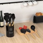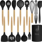 HEAT-RESISTANT AND DURABLE: Our silicone kitchen utensils set is crafted from premium, food-silicone that can withstand temperatures up to 446°F. Whether you’re simmering delicate sauces or searing steaks at high heat, this cooking utensil set is built to handle it all. The high-quality silicone ensures long-lasting durability, making it a reliable addition to your kitchen for everyday cooking SAFE, BPA-FREE, AND FOOD-MATERIAL: Made with high-quality, food-silicone, this silicone kitchen utensil set is BPA-free and safe for preparing any type of food. Unlike ordinary plastic utensil sets, it doesn’t retain odors or stains and won’t react with your ingredients, ensuring healthy meals for your family. Before first use, soak the utensils in water and air them out for 3 hours to eliminate any initial odor IDEAL FOR NON-STICK COOKWARE AND EASY TO CLEAN: These silicone kitchen utensils set includes 9 cooking tools and 4 baking utensils, which can meet the basic needs of kitchen cooking. It comes with a Deep Soup Ladle, Solid Serving Spoon, Slotted Spoon, Flexible Spatula, Round Spatula, Pasta Server, Slotted Turner, etc. These silicone cooking utensils not only protect non-stick pans from scratches but also possess excellent softness. The smooth silicone surface makes it easy for food to be released, making cooking and cleaning a breeze FLEXIBLE AND UNDEFORMABLE DESIGN: Each tool in this spatula set is reinforced with a stainless steel core and fully wrapped in silicone, offering a perfect balance of strength and flexibility. This seamless design prevents food from getting trapped in crevices, ensuring easy cleaning and better hygiene. The tools retain their shape over time and are gentle on non-stick surfaces. The handles feature small holes for easy hanging and storage. For the best care, we recommend hand washing to preserve the wooden handle IDEAL GIFT AND QUICK RESPONSE: This silicone kitchen utensils set makes an excellent gift for housewarmings, weddings, or any special occasion. We prioritize customer satisfaction and are committed to providing fast, responsive support for any inquiries. us via the Buyer Page, and we’ll respond within 12 hours to assist you