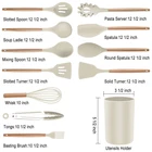 【19pcs Premium Kitchen Utensils Set】Silicone kitchen utensils set includes 12pcs cooking tools that will suit all your cooking and baking needs. Our silicone kitchen utensil set includes: Tong, Whisk, Basting Brush, Slotted Spoon, Slotted Turner, Pasta Server, Spoon, Spatula, Round Spatula, Solid Turner, Soup Ladle.Also come with the gift of 5pcs small Measuring Spoons of different sizes and 2pcs Silicone Mini Gloves all are in gold color. 【Heat-resistant & Non-stick & Non-Toxic】Our silicone kitchen utensils set use food grade silicone which are super heat resistant up to 464°F/240°C.The high heat tolerance of the silicone heads prevents the utensil from melting when exposed to heat. Kitchen utensils are also non-stick and non-toxic,easy to use and store. Only the basting brush silicone head and wooden handle are designed to be detachable, it can be put back at any time without affecting the use and easy to clean. 【Safe Cooking Utensils for Kitchen】Our kitchen tools are made of high quality thermoplastic silicone heads designed to protect the surface of precious non-stick cookware. silicone is safe to use for any type of food .The kitchen utensil set does not react with food or beverages, or produce any hazardous fumes. 【Solid Wooden Handle to Prevent Burns】This cooking utensils set combination of silicone head and wooden handle, the wooden cookware handle is ergonomically designed for comfortable grip, does not transfer heat to protect your hands and provide protection against rust. 【Easy Storage with Holder】Our silicone kitchen utensils set comes with a plastic holder for convenient storage organization. Each wooden handle has a practical hanging hole for wall hanging using hooks.