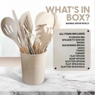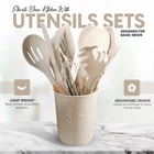 12 PCS Wooden Handle Silicone Utensil Set: This kitchen utensil set includes a variety of essential tools for cooking and baking. It includes a slotted spoon, spaghetti server, serving spoon, ladle, spatula, turner, tongs, and a cleaning brush. All the utensils are made of high-quality 100% food-silicone, which is BPA-free, non-, and safe for use in the kitchen. Heat-Resistant and Durable: The silicone utensils are heat-resistant up to 450°F, making them suitable for use in hot pots, pans, and ovens. They are also durable and can withstand heavy use without breaking or bending. The wooden handles provide a comfortable grip and prevent heat transfer from the utensils to your hands. Non-Stick and Easy to Clean: The silicone utensils are non-stick and easy to clean. They are stain-resistant and won't retain odors or flavors. The wooden handles are easy to wipe clean and can be washed in the dishwasher. Multi-Functional Design: The silicone utensils are versatile and can be used for a variety of tasks in the kitchen. They are ideal for cooking, baking, serving, and mixing. The set includes tools for both wet and dry ingredients, making it convenient to use for different recipes. Easy to : The silicone utensils come with a convenient storage box, which keeps them organized and easy to find. The box is also portable, making it easy to take the utensils with you when you travel or go on picnics.