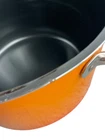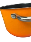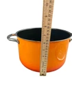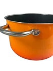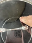 Pre-owned in good used condition. Glass lid has a hairline scratches as it shows on picture. Pot has some small flaws like small scratches on the rim and little flea bites scratches inside. All of those flaws showing on pictures. Overall in good shape.