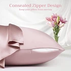 Why should you use a silk pillowcase? Delicate silk won't cause fine lines that rougher materials, like cotton, are believed to contribute to, and they can actually help make your skin-care products more effective. Silk pillowcases also tend to be good heat regulators, which means no flipping your pillow over to the cold side every 20 minutes Last (and perhaps most important), they lessen the amount of breakage you get from moving around on your pillow while you sleep, making for smoother, healthier hair. A side is 22 momme 6A grade 100% Natural Mulberry Silk. Its smoothness, softness, breathability, extensibility, and gentle touch experience will give you a comfortable sleep the whole night. B side is 100% organic Wood Pulp Fiber that is comfort, anti-static, and good at moisture absorption, feel the nature and freedom like the way we are from the nature. Though 2 differnt materials on one pilowcase, but both are wonderful! 22 Momme High Density Momme refers to the density of the silk and indicates the quality of the material. This silk pillowcase made with 22 Momme mulberry silk, whose fibers are longer and more uniform, so the fabric is smoother and will hold up through more washes Delicate Design · We use reliable YKK hidden zipper that prevents your pillow from slipping out and ensures that it stays securely in the pillowcase. · The hanging loops are sewed inside of the silk pillow shams for you to easily hang the silk pillowcase out on a clothesline with ease. TWO-SIDED DESIGN Silk pillowcase are made with 100% 22 momme highest grade (6A) mulberry silk on the front and 100% wood pulp fiber on the back. The surface of the silk is smooth and creates fewer wrinkles and indentations on the skin that help to slow down the formation of wrinkles. Wood pulp fiber has a silk-like soft touch, far superior to cotton in terms of comfort and strength. Our pillowcases give you a soft, smooth surface to sleep on while staying in place while you snooze. SILK PILLOWCASE FOR HAIR AND SKIN Silk pillow case is less absorbent, so it doesn't drink in our nighttime skincare products and won’t suck moisture from our skin as the way cotton can. Mulberry silk pillowcase contains 18 kinds of amino acids, including serine, which can nourish the skin and slow down the aging process. The smooth surface avoids friction and static, so you can wake up without bedhead and sleep lines on your face. Keeping hair glossy and smooth with flyaways, frizziness. HIDDEN ZIPPER AND BUILT-IN DRYING ROPE: Our silk pillow protector is equipped with the well-known YKK zipper. YKK zipper is 200 times more durable than ordinary zippers. Hidden zipper prevents your silk pillowcase from moving out when you sleep and no more pinched hair day and night. A longer and wider zipper opening make it easy to install pillow insert. Built-in drying rope makes pillowcase drying more convenient while keeping the pillowcase simple and tidy. UPGRADED WORKMANSHIP: Most silk pillowcases are thin cause they use the 3.5 stitches / 1 cm process. The gap between the satin is large and easy to tear during the washing process or daily uses. We upgrade the process to 5 stitches / 1cm, pillowcase is more durable and tough! No more worrying about the pillowcase tearing! Reactive printing and dyeing processing, silk pillowcase 1 pack will not fade. BEST GIFT: The silk pillowcase is definitely the best gift for your curly-haired friends, those who want to improve the condition of their skin and those who are sweet sleepers. You can choose the silk pillow cases color match your sheets or make the pillows an exciting contrast to your bedding. The pillowcases are nicely packaged in our carefully designed red gift box. It’s definitely a delicate and thoughtful gift for your loved one. 1 x pillow case , standard size: 20 x 30 inch, light pink