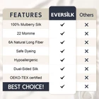Silk Pillowcase for Hair and Skin: 100% Mulberry Silk - 22 Momme Silk Pillow Cases - Both Sides Grade 6A Pure Silk Pillow Covers with Hidden Zipper, Ideal Gifts, 1 Piece (King, Pink) Product Details Size: King 20''×36'' Color: Pink Brand: EVERSILK MPN: SILKPILLOWCASE001 UPC: Does not apply EAN: Does not apply Brand: EVERSILK Pillow Type: Bed Pillow Material: Silk Size: King 20''×36'' Product Dimensions: 36"L x 20"W Thread Count: 360 Fabric Type: 100% Pure Mulberry Silk, 22 Momme 6a High-grade Long Fibers Product Care Instructions: Machine Wash Material Type: Silk Item Display Dimensions: 36 x 20 inches Item Dimensions L x W: 36"L x 20"W Size: King 20''×36'' Closure Type: Zipper Additional Features: Cooling, 22 Momme 6A Grade Natural Fibers, Reuseable, 100% Pure Mulberry Silk, Breathable Recommended Uses For Product: Wear & Tear Protection Pillow Type: Bed Pillow Theme: No theme Pattern: Solid Style: Classic Color: Pink Number of Sets: 1 Number of Pieces: 1 Brand Name: EVERSILK Number of Items: 1 SILK PILLOWCASE FOR HAIR AND SKIN: With 7.4% low friction, EVERSILK silk pillowcase reduces frizz, tangles, breakage, especially for curly hair. Its natural fibers keep skin hydrated, minimize sleep lines, and help ease sensitive skin issues like dryness REAL SILK, TRUE BENEFITS: The EVERSILK 22 Momme silk pillowcase, made from real 100% pure mulberry silk, has lower friction and moisture absorption than satin or cotton. Enjoy the comfort that pure silk can offer WHY EVERSILK? Our rigorously crafted silk pillow case use over 1500 meters of 6A+ grade mulberry silk. Featuring safe dyeing and a reinforced zipper, they blend shine, thickness, softness, and durability THE SECRET TO BETTER SLEEP: EVERSILK silk pillow cover naturally adjusts temperature, keeping you cooling in summer and warm in the winter. By minimizing temperature fluctuations, ensuring you enjoy comfortable sleep all year round A GIFT OF LOVE: Treat yourself and loved ones with EVERSILK silk pillowcases, available in various colors and sizesStandard, Queen, King. Elegantly packaged, perfect for special occasions like birthdays, Mother's Day, Thanksgiving, or Christmas