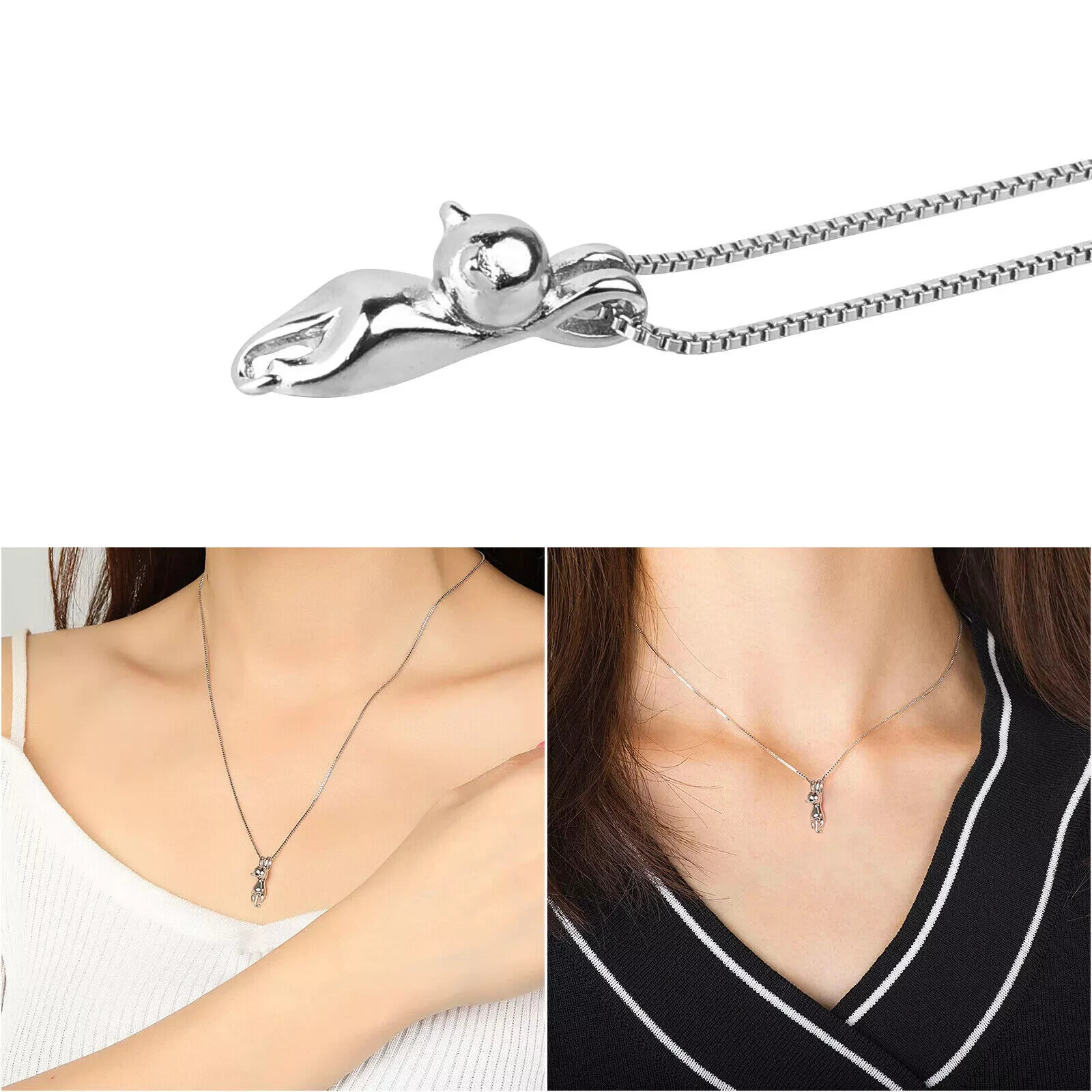 This fashion dainty necklace for women or girl, is your perfect winter jewelry. It can be worn every day for a casual look and paired with the matching necklace pendant to complete your outfit. Color: 925 Sterling Silver Plated NECKLACE SIZE - Pendant Size: 1.14*0.34 inches (29*8.6mm); Chain Length: 18inches+2inches extension/Resizable which make sure it will fit perfectly on anyone. Clasp Type: Lobster-Claw-Clasps, easy to put on; ♥WONDERFUL BIRTHDAY GIFT♥ - Give this pretty sterling silver pendant necklace as a unique present to your loved ones, like lover, girlfriend, wife, fiancee, mother, mother in law, daughter, your friend, or even yourself for valentine's day, mother's day, christmas day and so on, express your love to them, and make them feel very special and charming just like the star. It is also a good choice for engagement or wedding jewelry, which is endowed with special significance. Package Included: 1PC Cat Kitty Pendant Necklac NO Retail Box. Packed Safely in OPP Bag. Note:Due to the resolution of the computer screen is different, the physical colors may be different from the picture, which is a normal phenomenon, please mind the buyer carefully to buy