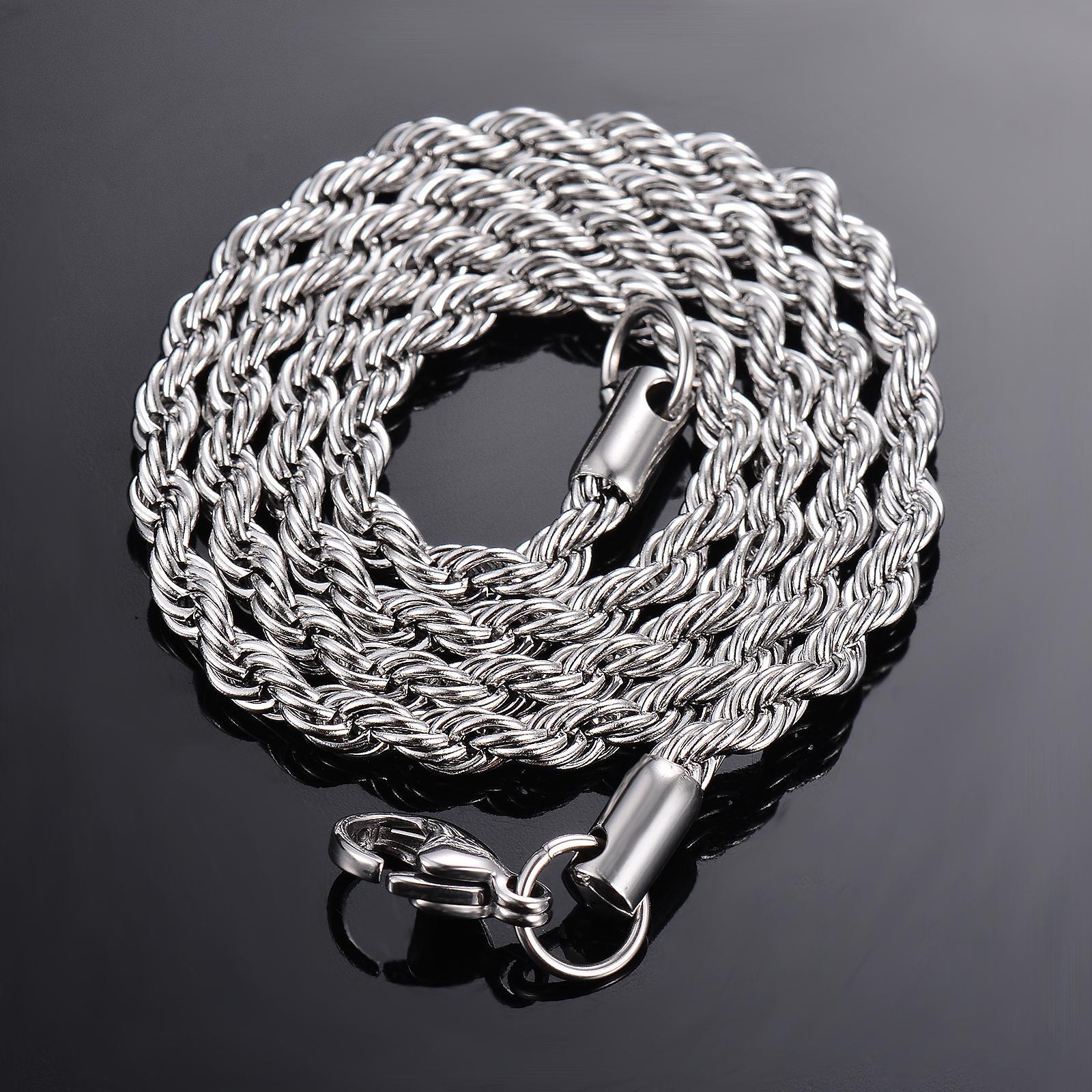 FREE SHIPPING 30 DAYS RETURN EASY PAYMENT Silver Color Rope Chain Necklace Rope Chain Fine Jewelry Pendant Material: Staineless SteelLink Chain(No fading, no allergy) Condition: 100% Brand New Color:Gold Color Customized length is available. REVIEWS The product came very well packaged. I'm very happy. thank you for everything. Seller strongly recommended. This is great! I definitely recommend! Product looks amazing Delivery was fast. Excellent seller, great communication. I advise everyone to buy it!