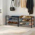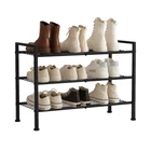 Simple 3 Tier Shoe Rack,Metal Stackable Shoe Storage Organizer for Closet,Entryway, Bedroom, Black Sufficient Capacity: 3 layers of shoe racks can hold 9 pairs of shoes, with dimensions of 26.5" W x 10.6" D x 19" H, additional bottom storage for slippers. Lightweight & Durable: Equipped with sturdy metal construction. The metal shelves ensures load-bearing capacity, easy for you to change the placement location of the shoe rack according to your preferences. Easy to Assemble and Disassemble: Come with a manual that only requires four steps to complete the assembly. If you need to move, the design of this shoe rack can also be quickly disassembled. Easy to Clean: The coating on each layer of this shoe rack is very uniform and can be wiped directly with a damp cloth. If you are afraid of not being clean, you can easily pick up and wipe the shelves on each layer. Suitable for Various Scenarios:The shoe rack features a simple design and a compact structure, making it perfect for closet, entryway, bedroom, or living room and so on.