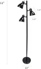 3 lights each with its own rotary switch Black finish Each lamp head uses 1 x 60W equivalent Type A medium base bulb (not included) Lamp shades rotate to change direction of Lighting Dimensions L:17" x w: 9.75" x H: 63.75" Some assembly required
