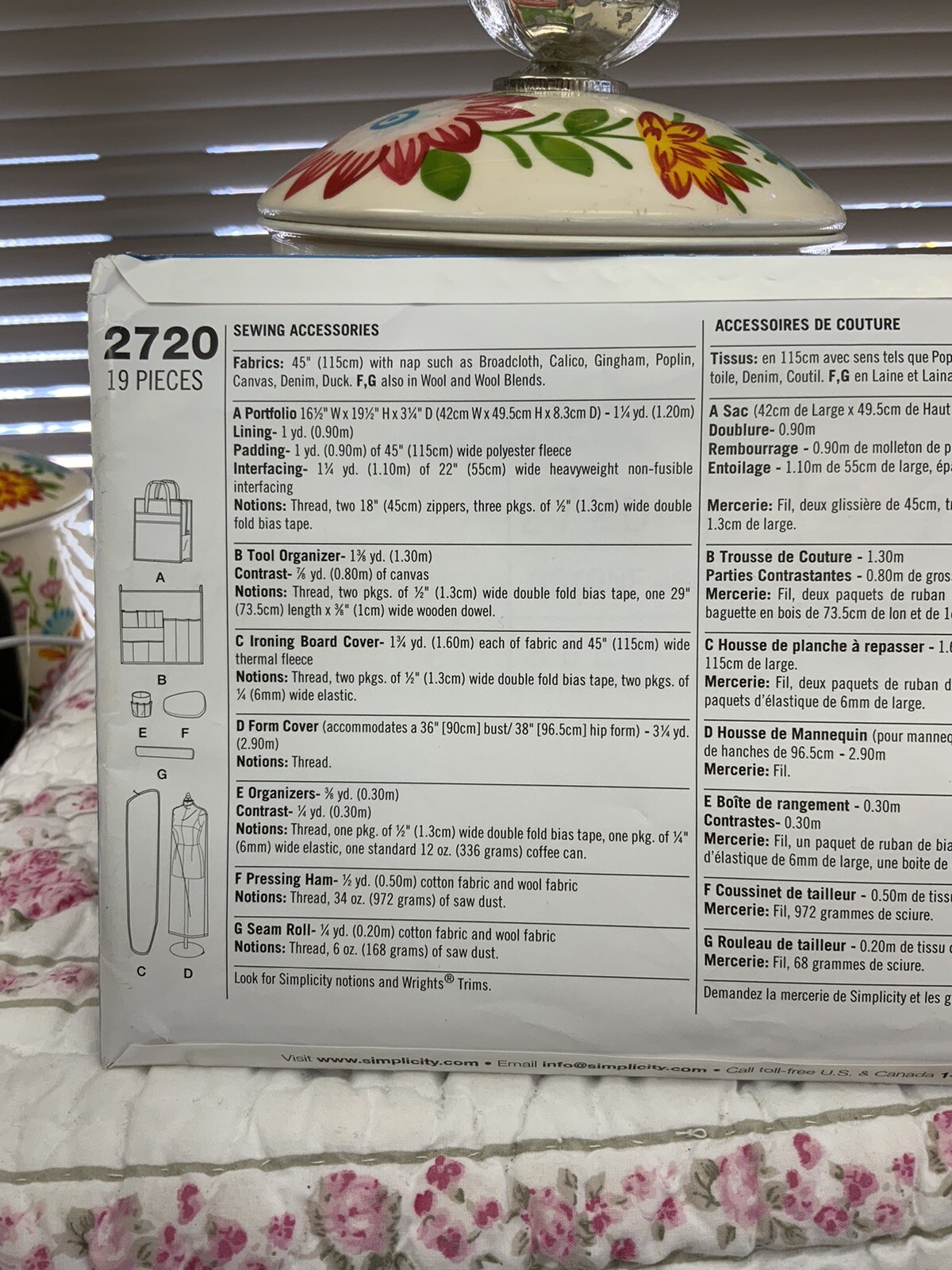 Simplicity Sewing Room Ironing Board Form Cover +Accessories UC Pattern 2720. Pattern is UNCUT. Envelope has rubbing and bumping. Flap has started coming away from envelope.