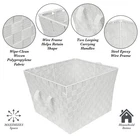 This Simplify Woven Storage Bin is perfect for storage for any room in your home. It is made of sturdy polypropylene with an epoxy wire frame. It has dual handles for easy carrying. It acts as a great storage accessory for all your home needs. Keep in your bedroom or closet to store clothes or blankets. Or keep it in the kids room to help organize toys and games. There are so many uses for this basket. Durable wipe-clean woven polypropylene fabric strapping 2 looping carrying handles Steel epoxy coated frame Storage organizer A multitude of styles/colors to fit any home Wireframe helps retain shape Lightweight design 730g/100m pp woven strap 3.8mm wireframe with powder coating Dimensions: 13"L x 15"W x 10"D